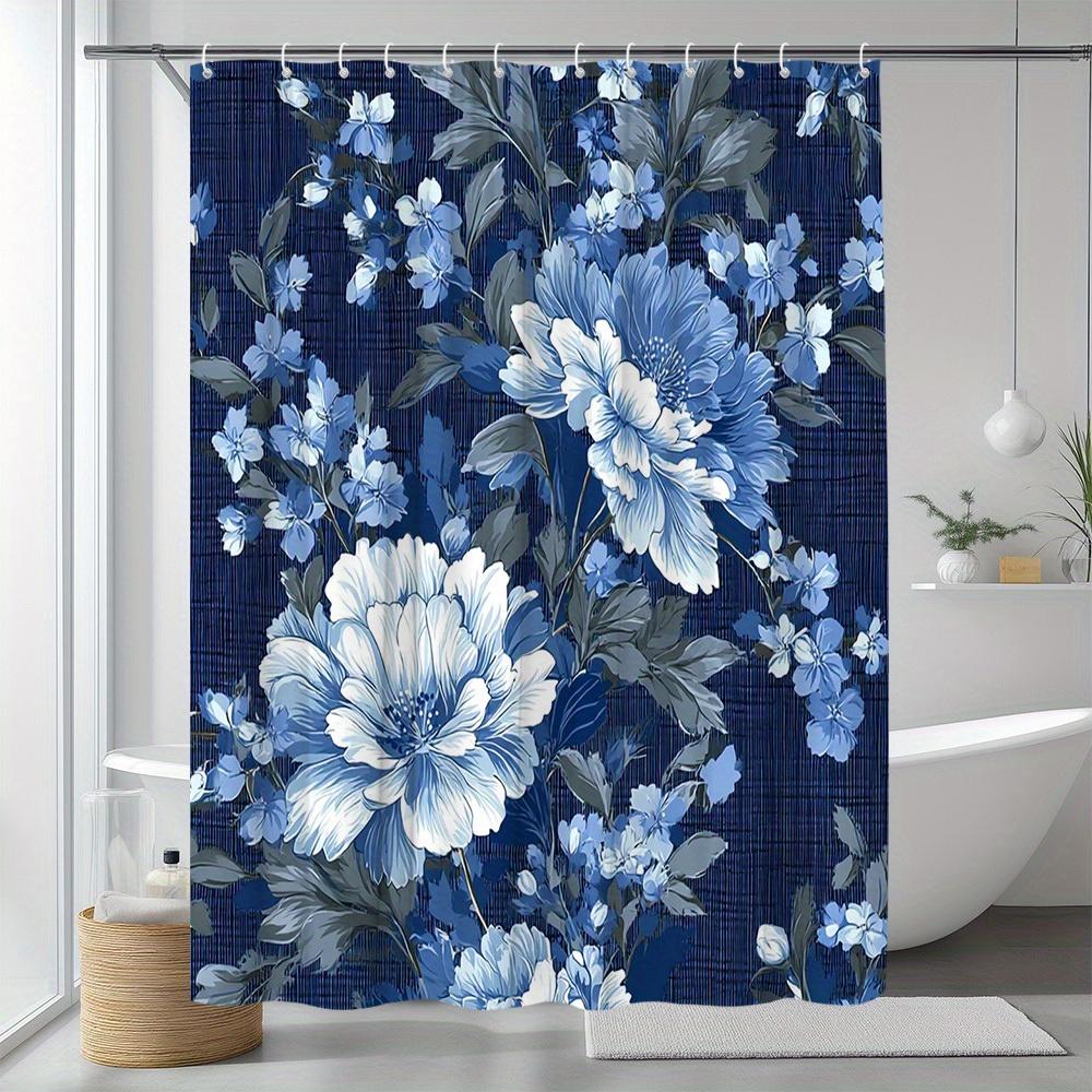 1pc Floral Shower Curtain Elegant Blue Flower Pattern Adds Natural Scenery Bathroom Decor Polyester Fabric Includes 12 Hooks