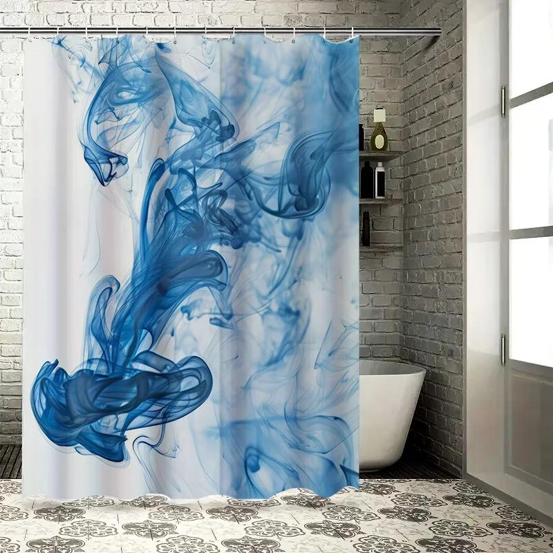 Blue Smoke Effect Shower Curtain Decor Modern Blue Ink Print Shower Panels Bathroom Decoration Waterproof Fabric