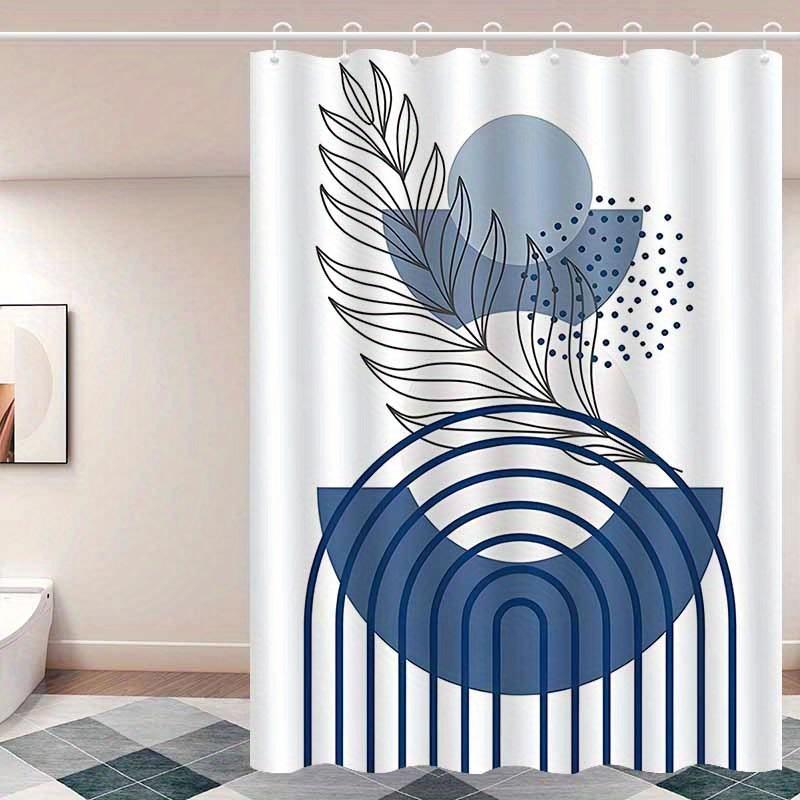 1pc blue bohemian abstract leaf pattern shower curtain, polyester fabric, machine washable, suitable for bathroom decoration