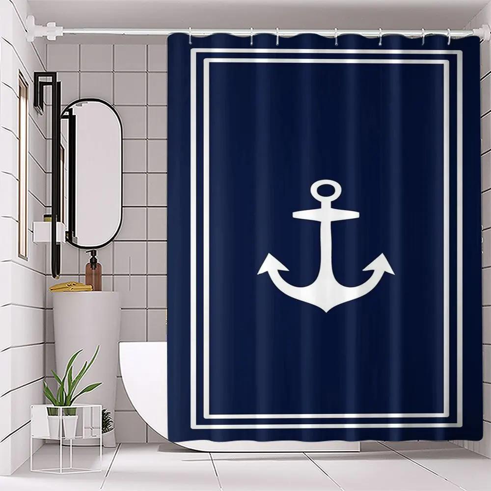 1pc Ocean Anchor Winter Bathroom Curtain Digital Print Polyester Shower Curtain No-Hole Bathroom Partition Curtain