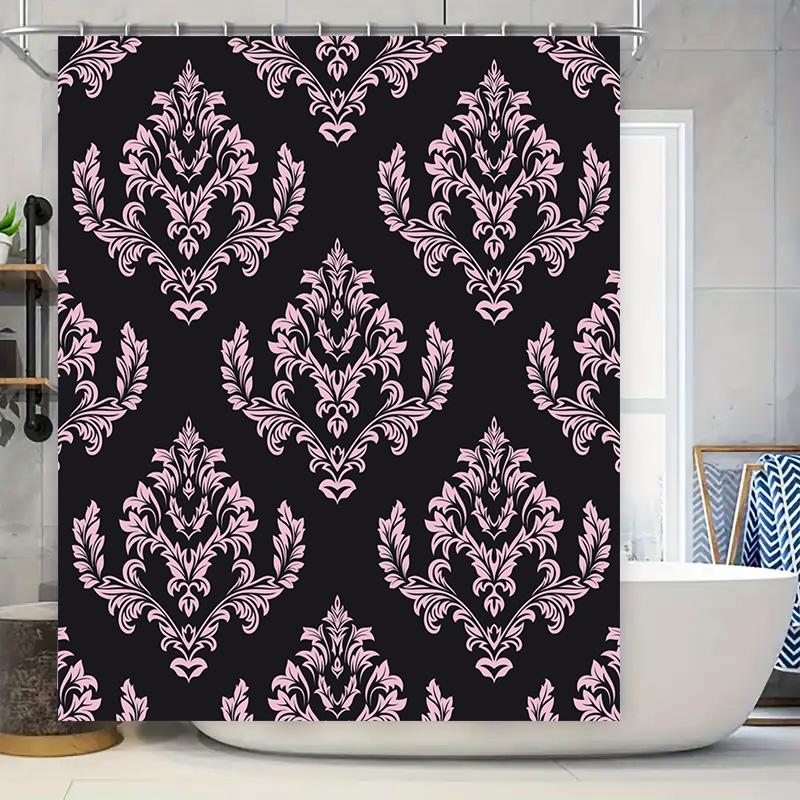 Vintage Damask Shower Curtain Pink Lace Pattern with Floral Design Black Fabric Waterproof Bath Decor for a 128 character AliExp