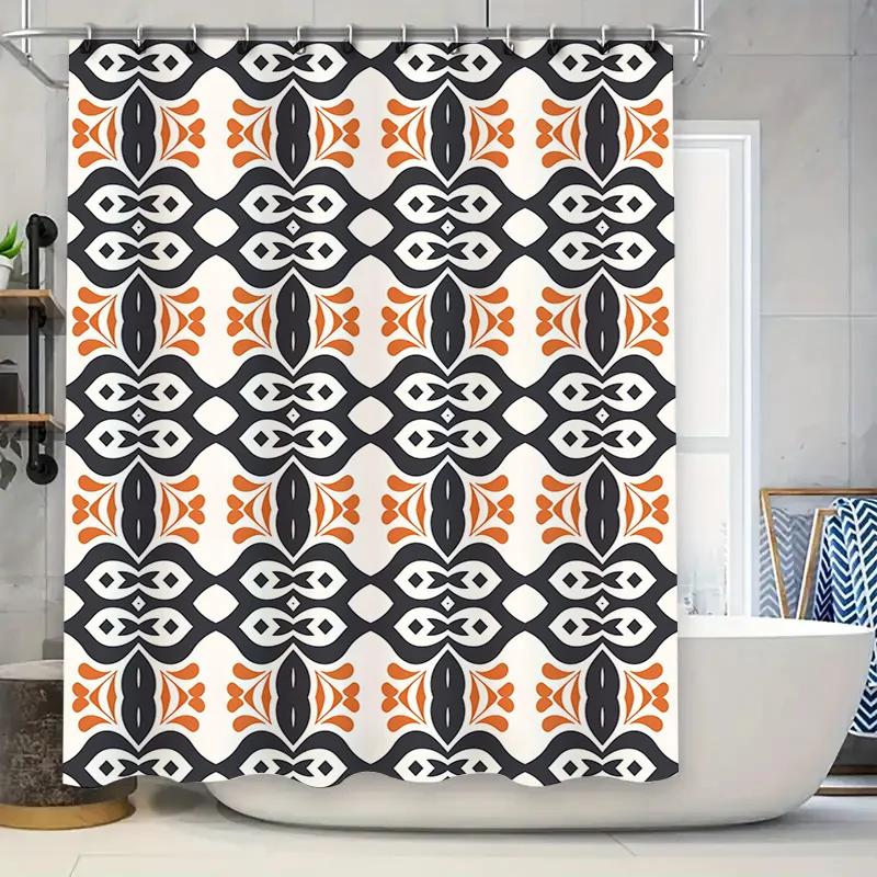 Modern Geometric Shower Curtain Printed Fabric Waterproof Bathroom Decor Black White Orange
