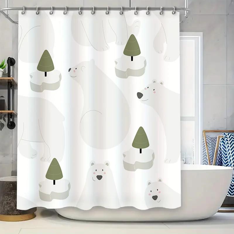 Home Decor Shower Curtain featuring Cute Polar Bears White Waterproof Fabric Bathroom Decoration for Children's Room or Nursery