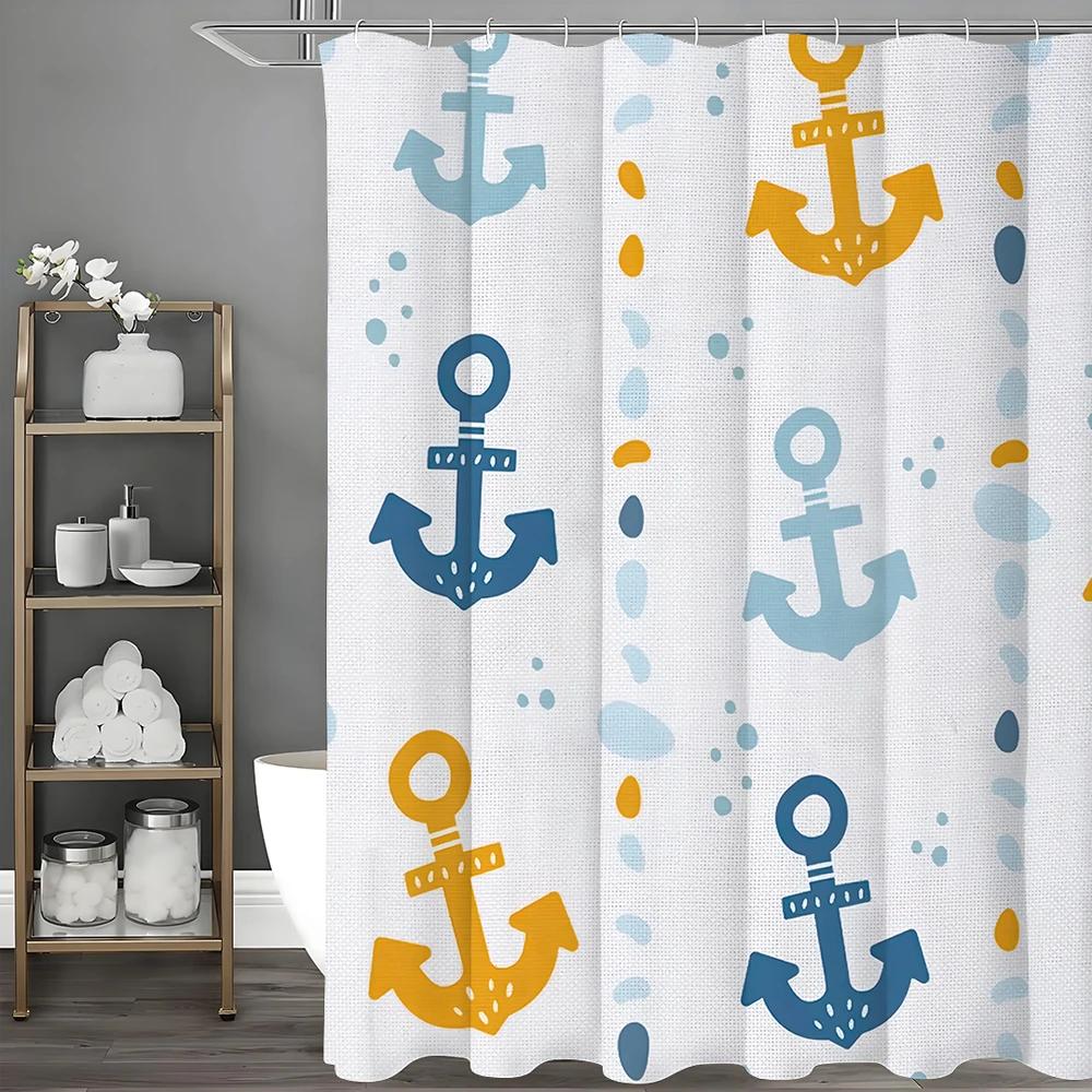 Kreskówkowa kotwica zasłona prysznicowa, dekoracyjna zasłona prysznicowa do łazienki, wodoodporna zasłona prysznicowa z haczykami