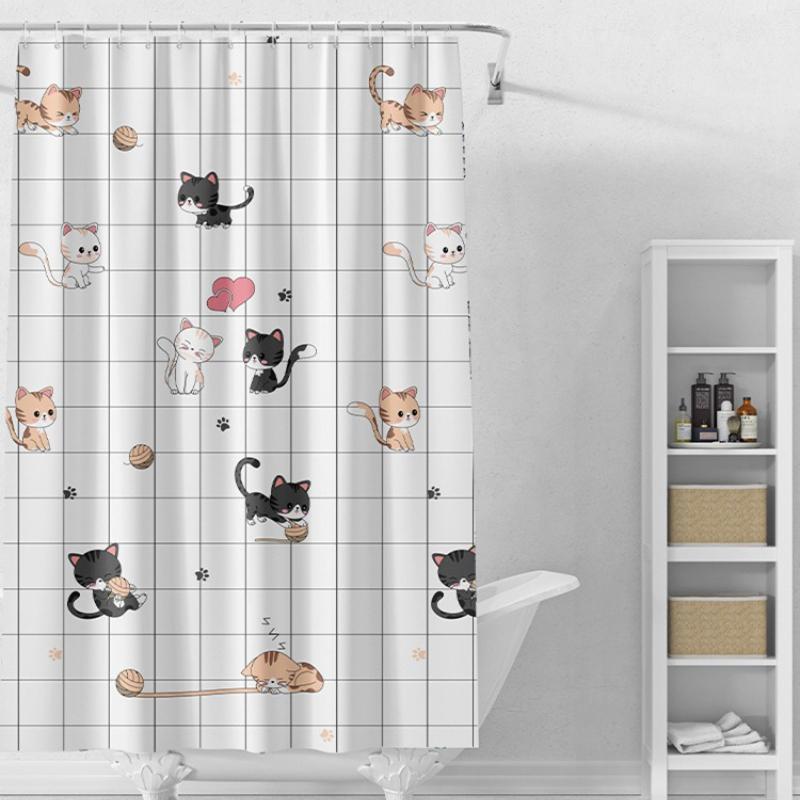 Shower Curtains Cartoon Naughty Cat Print Bathroom Curtain Waterproof Simple Easy To Clean PEVA Fabric with Hooks 200cm Cute