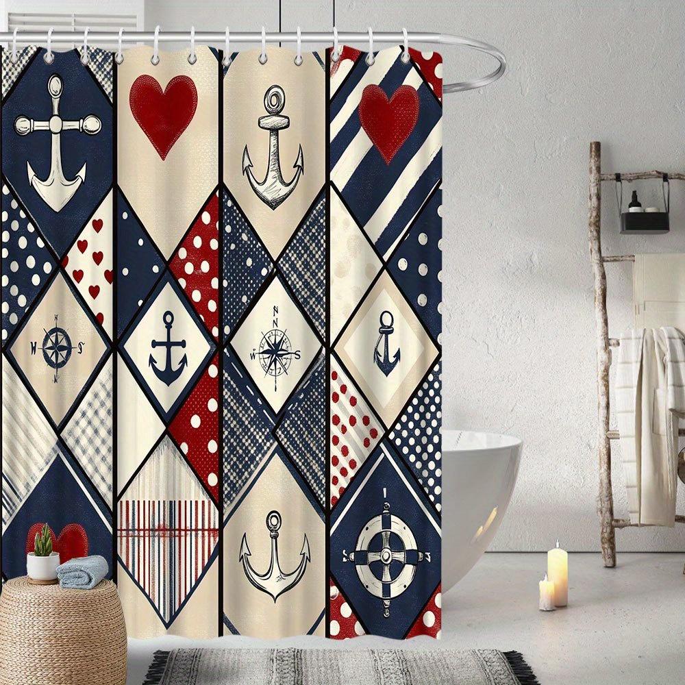 Vintage Nautical Shower Curtain, Maritime Symbols,Fade-Resistant, Machine Washable, Bathroom Decor