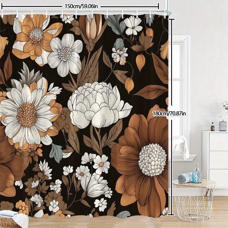 1pc Retro floral pattern shower curtain, made of polyester, machine washable, with hooks, suitable for bathroom decoration.