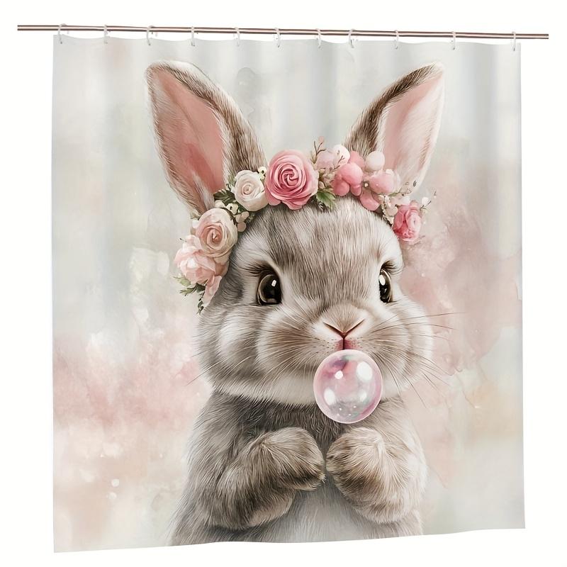 Charming rabbit shower curtain - rabbits with flower crowns hanging in the living room, bedroom decoration - cute and natural