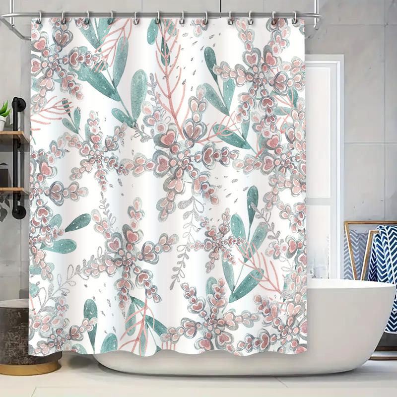 Floral Pattern Shower Curtain Waterproof Decorative Bath Mat Housewarming Gift for Bathroom