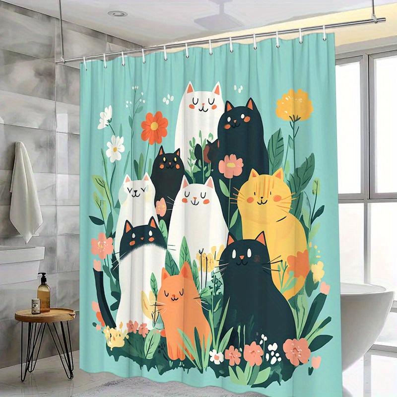 Colorful Cats and Flowers Shower Curtain - Water-Resistant, Easy to Clean, Adds a Fun and Whimsical Touch to Your Bathroom Decor