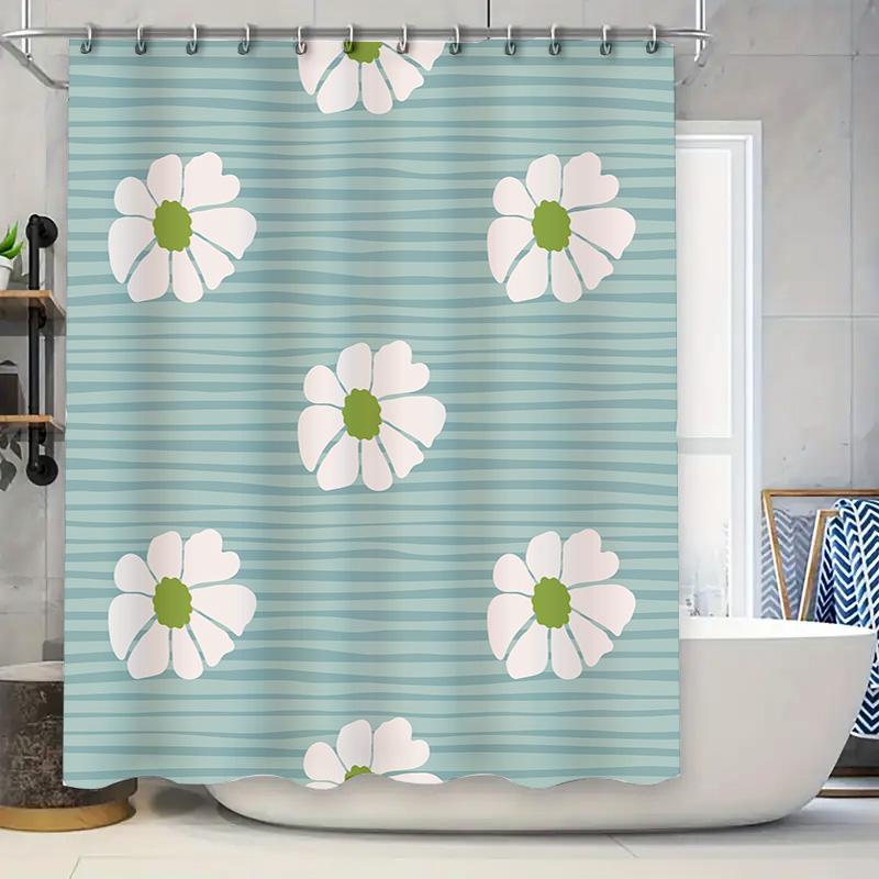 Bathroom Shower Curtain Floral Print Waterproof Fabric Decorative Home Bathroom Accessories Blue White Green