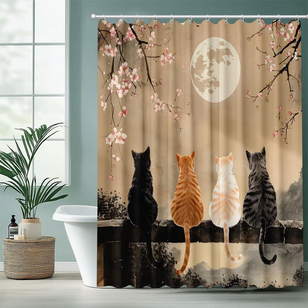 Cat Print Shower Curtain - Stylish & Durable, Machine-Washable, High-Quality Home Decor, Includes 12 Hooks for Easy Setup