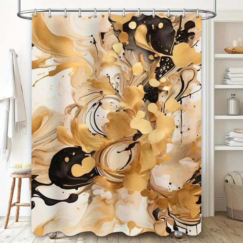 Luxurious Floral Shower Curtain Modern Decorative Bathroom Fabric Black White Gold Color Blended Flower Design Waterproof