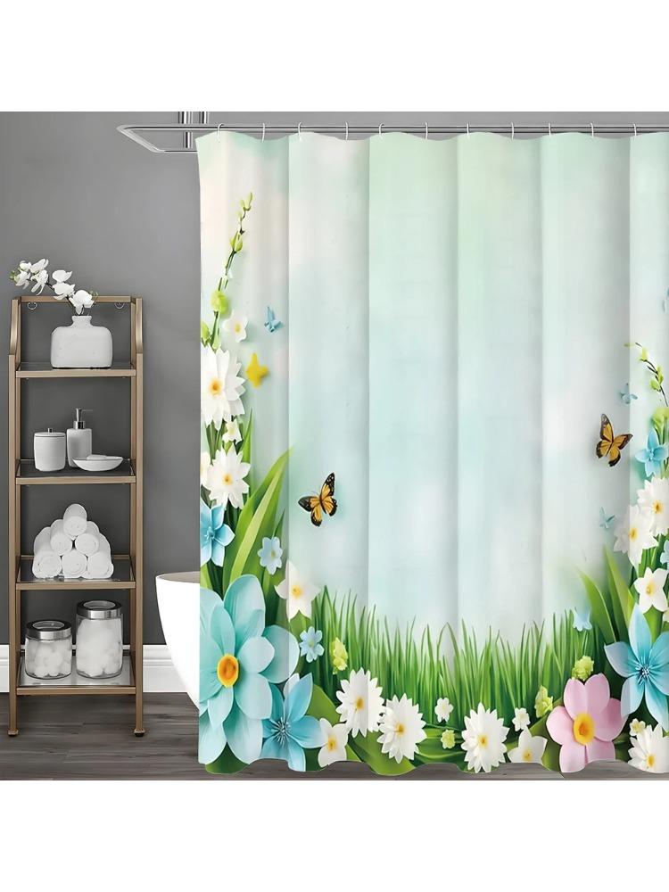 Zasłona prysznicowa z motywem kwiatów i trawy, dekoracyjna zasłona prysznicowa do łazienki, wodoodporna zasłona prysznicowa na haczyki
