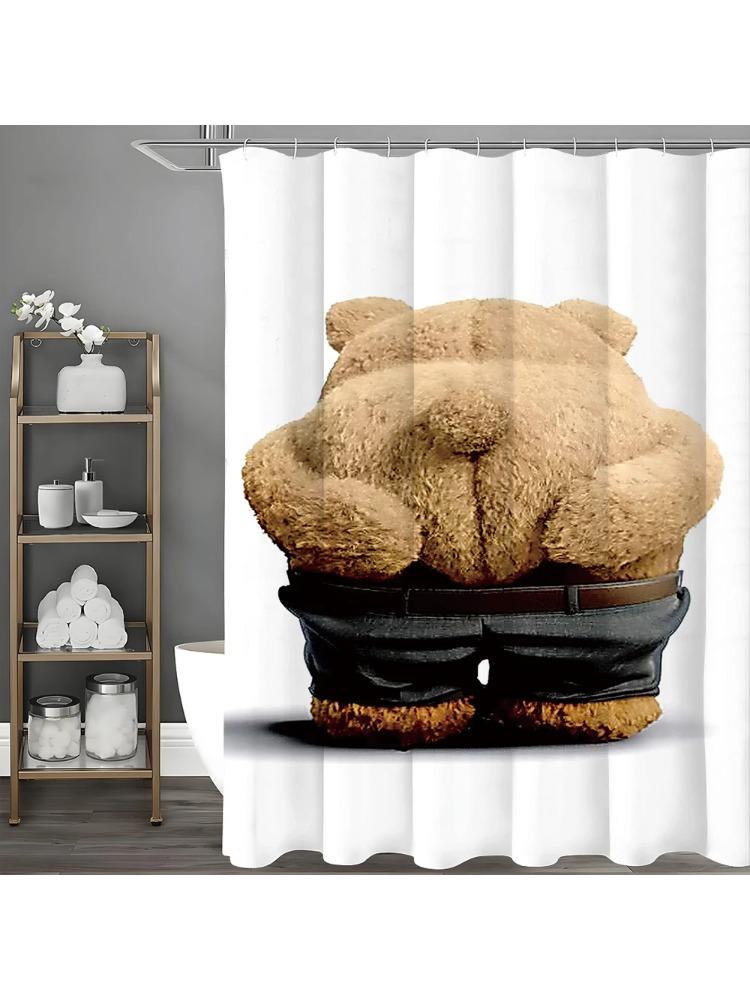 Cartoon Fun Bear Shower Curtain, Bathroom Decorative Shower Curtain, Waterproof Shower Curtain with Hooks