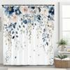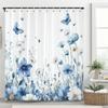 1PC Blue Flowers and Butterflies Shower Curtain, Floral and Leaf Bathroom Decorative Curtain,Polyester Home Curtain with Hooks