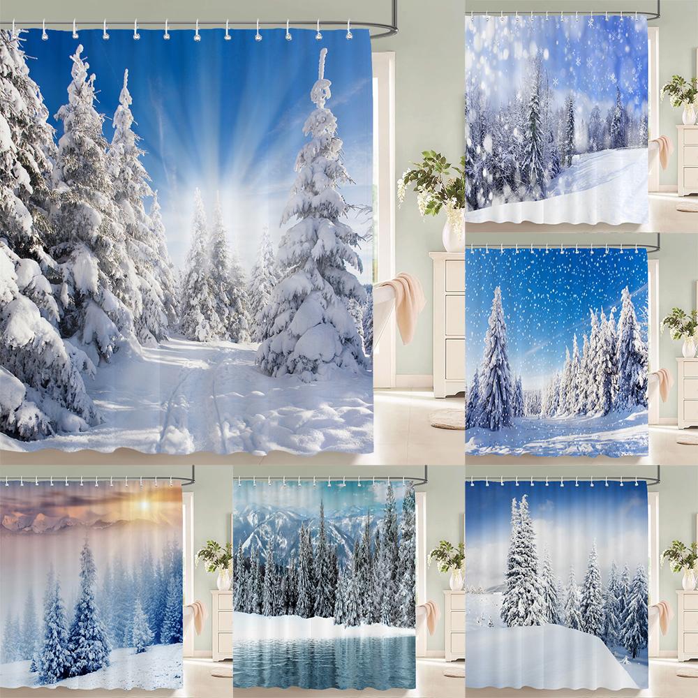 1 szt. Zimowy krajobraz Zasłona prysznicowa Scena śnieżna Drukowana Zasłona łazienkowa Tkanina poliestrowa Wodoodporna Zasłona do dekoracji domu