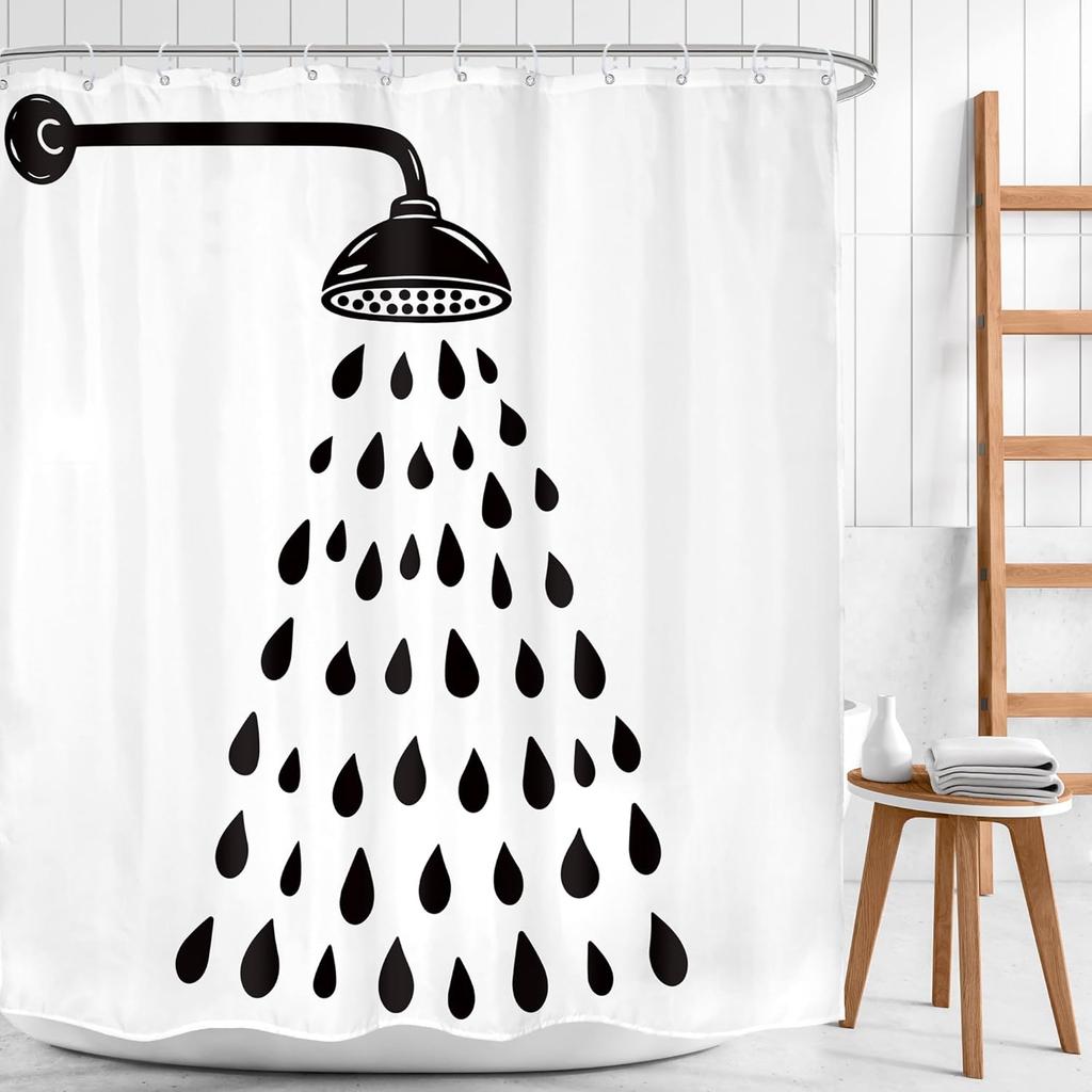 Black and White Shower Curtain, Funny Fun Kids Cute Water Drop Modern Simple Silhouette Minimalist Bathroom Decor Cartoon Bath