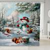 3DCute Cat Shower Curtain Christmas New Year Theme Bathroom Curtains for Kids Boys Girls Teens Lovely Kitty Decor Winter Holid