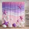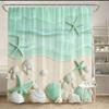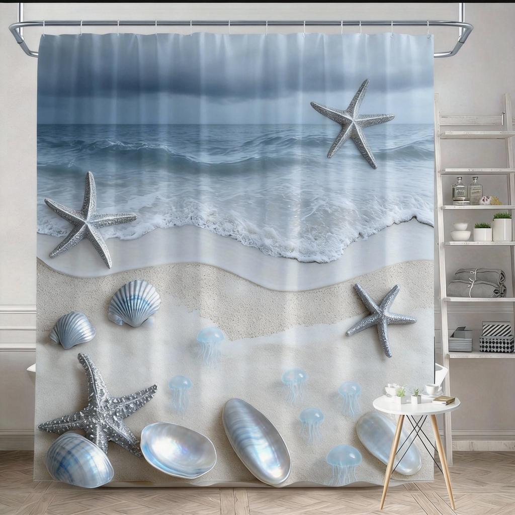 Beach Shower Curtain 180x180cm – Coastal Waves, Sandy Shore & Seashells in Neutral Tones, Ocean Bathroom Decor, 12 Hooks