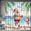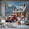 Christmas Shower Curtain, Winter Snowman Santa Claus Snowflake Gnome Farm Truck Berry Christmas Tree Cartoon Bathroom Decorati