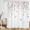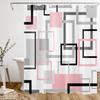 Pink Abstract Geometric Shower Curtain for Bathroom, Pink and Gold Leaf Boho Plant Shower Curtain with Hooks Modern Aesthetic