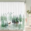 Forest Elk Deer Shower Curtain Trees Landscape Bathroom Decor Curtains Polyester Fabric Waterproof Bath Curtain With Hooks