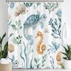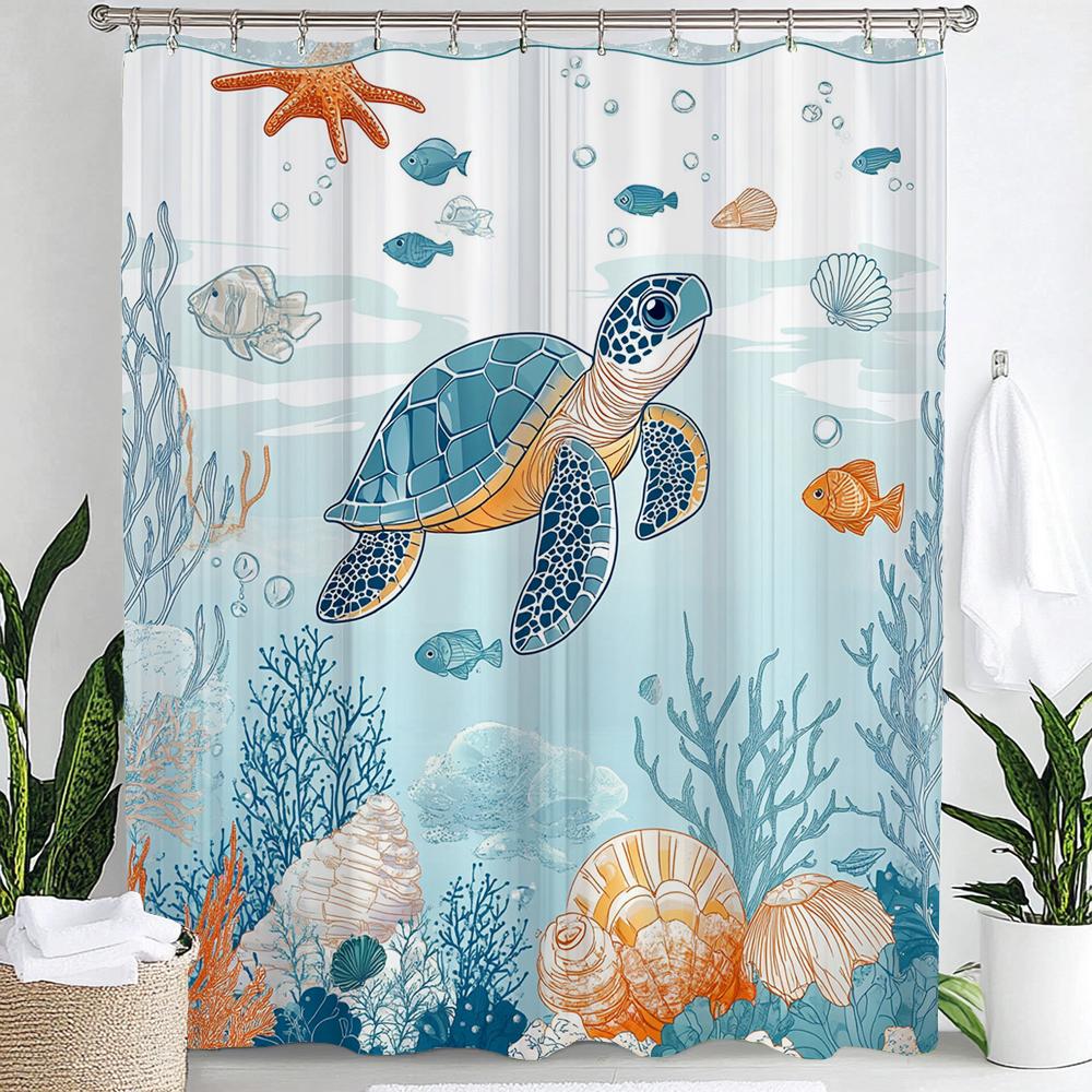1pc Sea Turtle Print Waterproof Shower Curtain,Beach Coastal Ocean Turtle Starfish Partition Privacy Hanging Curtain with Hooks