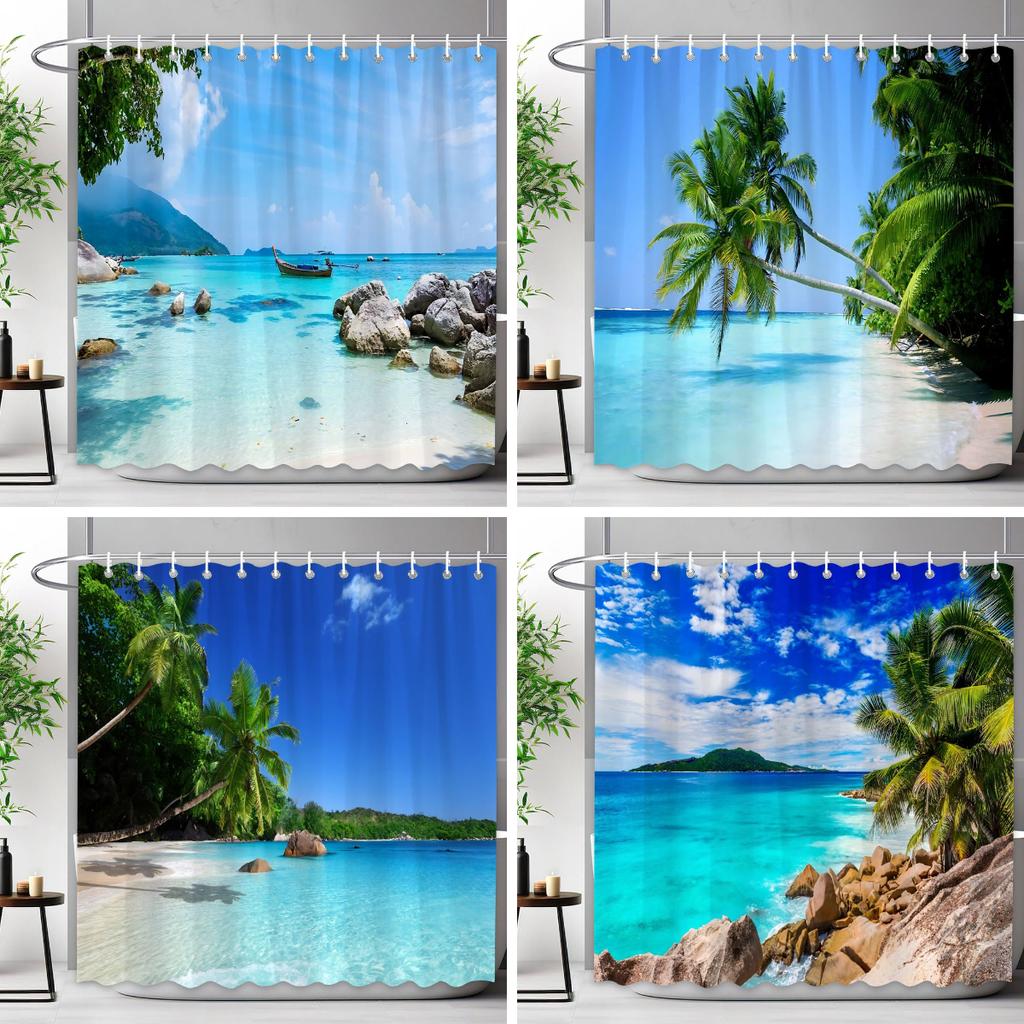 Sceneria Morska Zasłona Prysznicowa Niebieski Ocean Plaża Tropikalne Lasy Outdoor Natura Krajobraz Poliestrowe Zasłony Prysznicowe Wystrój Łazienki