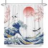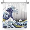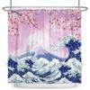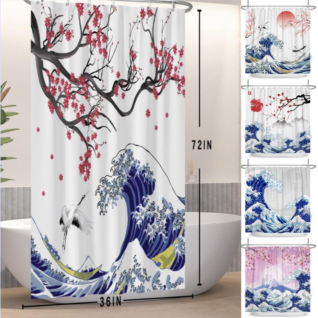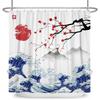 Japanese Style Wave Shower Curtain Ukiyo E Art Cherry Blossom Print Waterproof Bath Curtain Bathroom Decor Polyester With Hooks