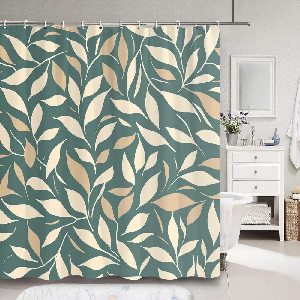 Zasłona prysznicowa w kształcie liścia Prosta, nowoczesna, kolorowa, z poliestru, zasłona prysznicowa z motywem liści, dekoracja łazienki z haczykami, akcesoria łazienkowe