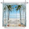 Coastal Vacation Shower Curtain Beach View Door Waterproof Bath Curtain For Bathroom Decor Palm Sailboat Polyester With Hooks
