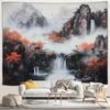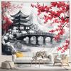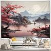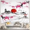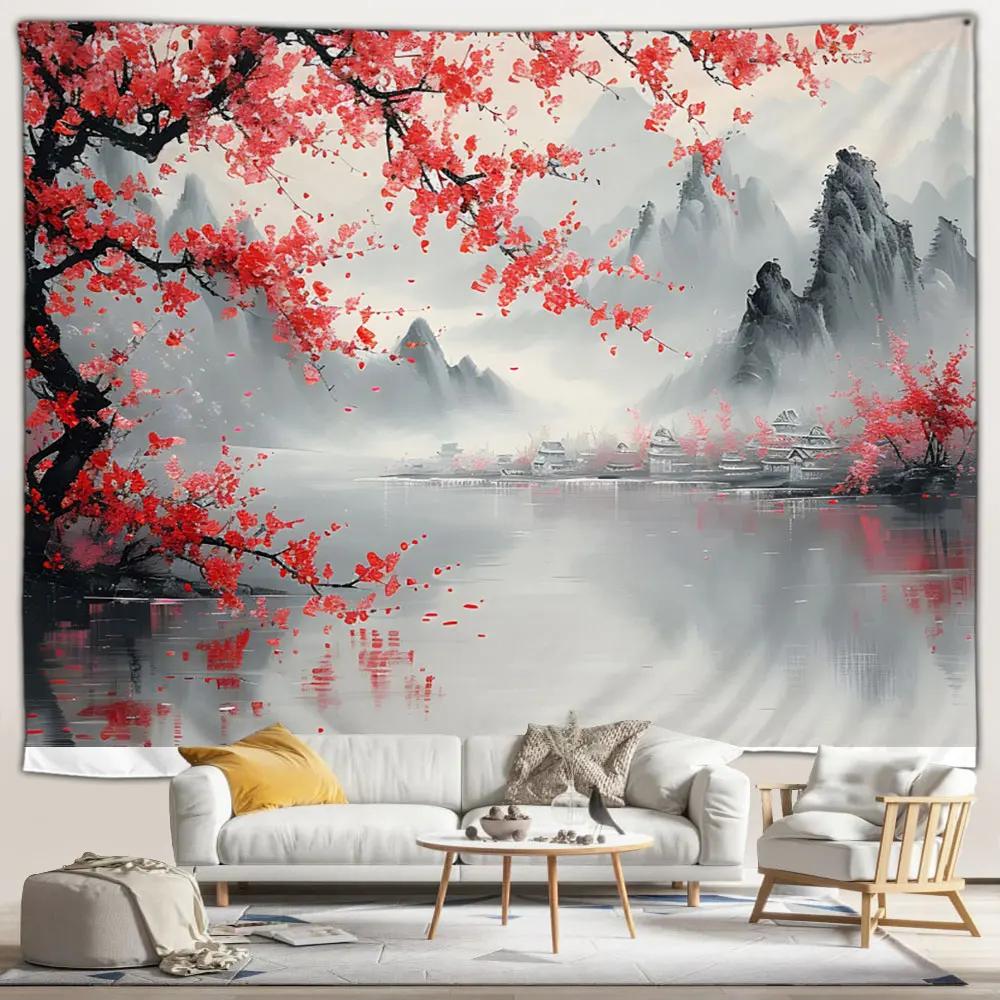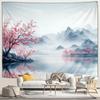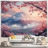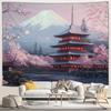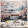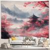 Japanese Scenery Tapestry Pink Cherry Blossom Flowers Misty Landscape Chinese Architecture Living Room Bedroom Decor Wall Hangin