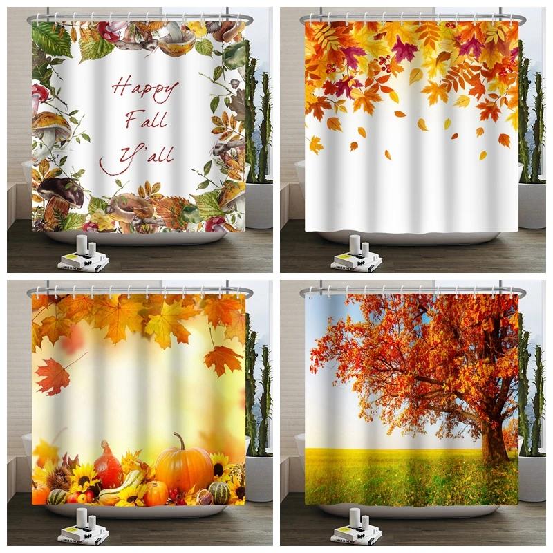 Witaj Jesieni Zasłona Prysznicowa Jesienne Liście Klonu Dynia Dekoracja Łazienki Poliestrowa Tkanina Zasłona Prysznicowa z Haczykami Dekoracja Pokoju
