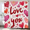 Modern heart-shaped Red Love Pattern Shower Curtain, Bathroom Decorative Shower Curtain, Waterproof Shower Curtain with Hooks