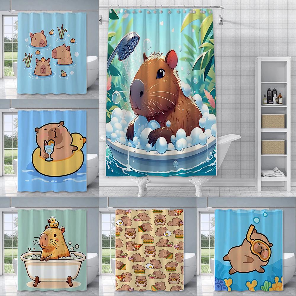 Zasłona Prysznicowa Wodoodporna Tkanina Poliestrowa Farba Kolorowa Kąpiel Słodkie Kapybary Zasłony Dom Łazienka Dekor Zasłona Z Hakiem