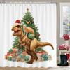 Merry Christmas dinosaur cat Print Bathing Curtain Bathroom Shower Curtain With Hooks bathroom home decor and accessories