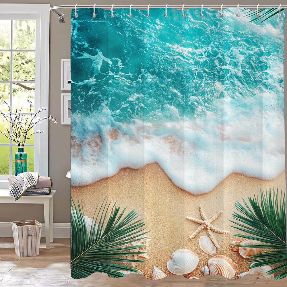 Sunshine Beach Shower Curtain,Ocean Shell Starfish Printing Polyester Fabric Bathroom Curtains for Home Decoration Curtain