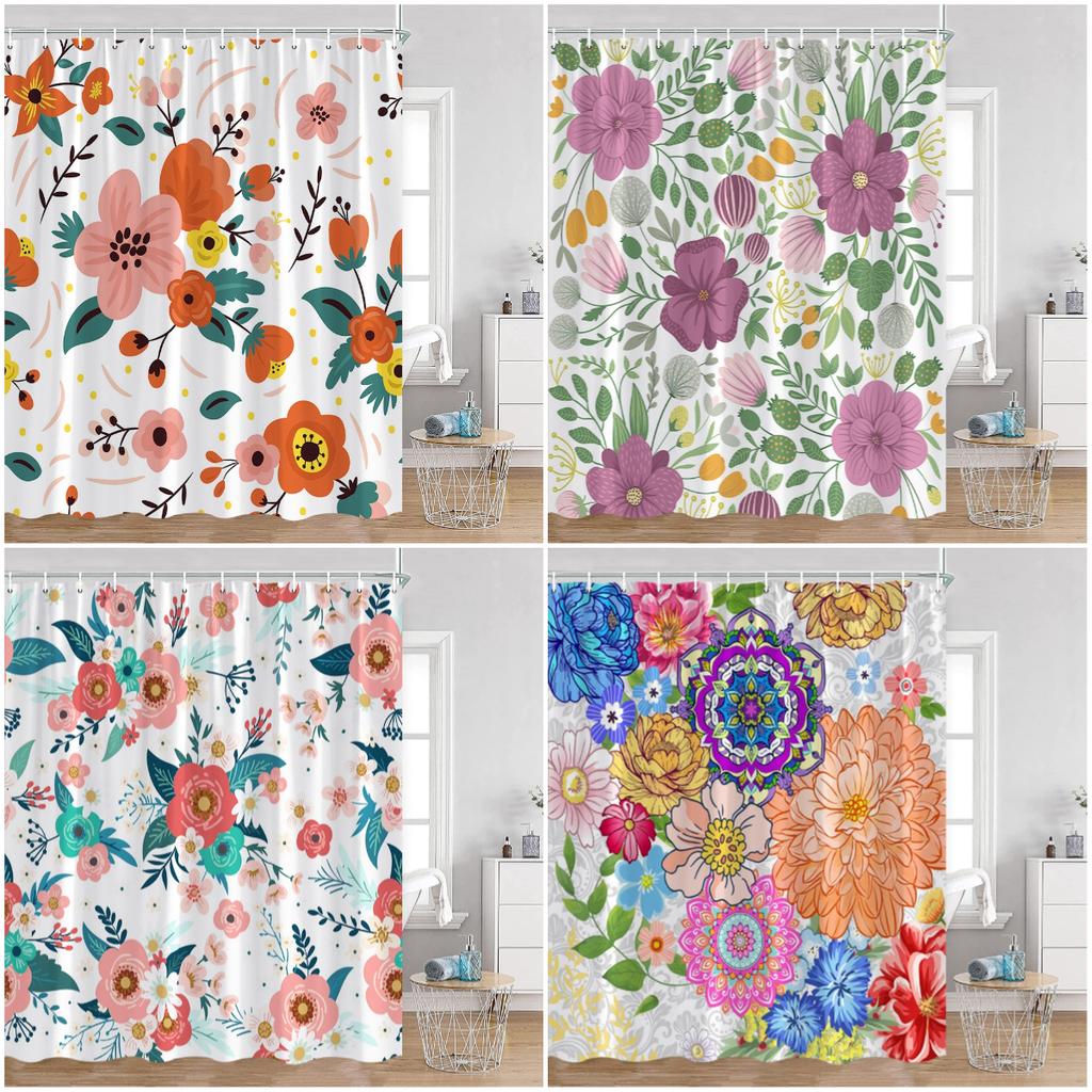 Colorful Flowers Shower Curtains Retro Flowers Bohemian Style Plants Botanical Bathroom Curtain Modern Minimalist Bath Curtain