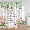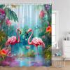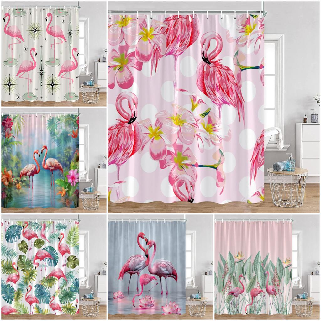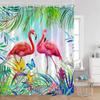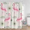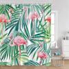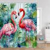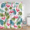 Flamingos Shower Curtains Tropical Leaves Pink Birds Green Plants Bathroom Curtain Polyester Fabric Home Decorations with Hooks