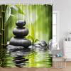 Zen Green Bamboo Shower Curtain Orchid Buddha Meditation Black Stone Candle Stream Plant Bathroom Decor Polyester Bath Curtain