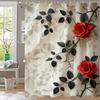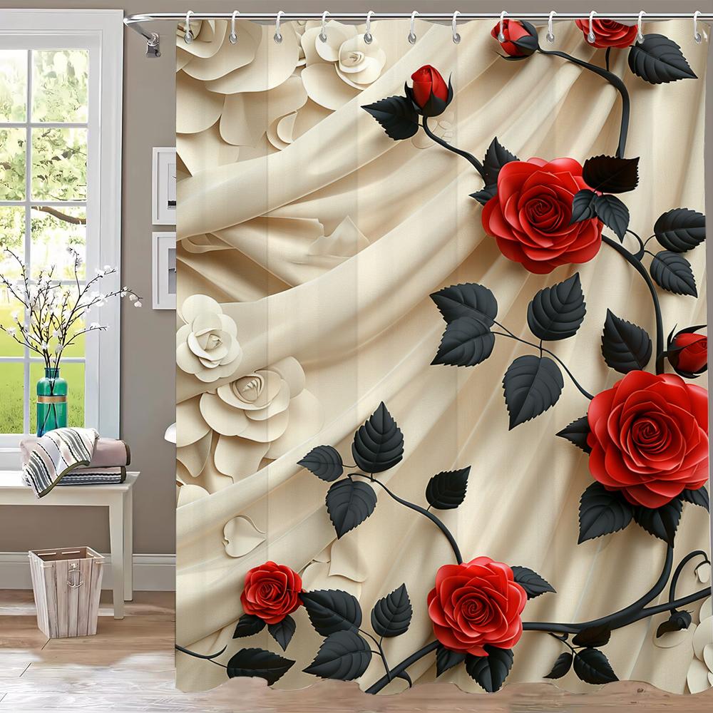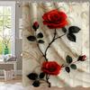 1 Piece Romantic Red Rose Flowers Shower Curtain, Bathroom Decorative Shower Curtain,Printed Polyester Home Curtain with Hooks