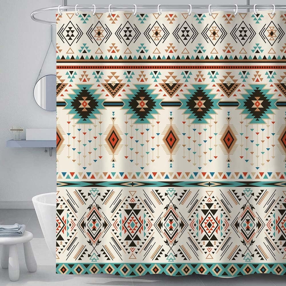 Południowo-zachodni Plemienny Abstrakcyjny Geometryczny Retro Zasłona Prysznicowa Styl Boho Tkanina Dekoracja Łazienki z Hakiem