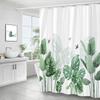 Green Leaf Plant Simple Nordic Printing Bathroom Shower Curtain Polyester Waterproof Home Decoration Curtain with 12 Hooks