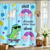 Kids Fantasy Shower Curtain 1pc Dinosaur, Unicorn & Rainbow Pattern, Playful Bath Curtain for Children's Room and Nursery Decor