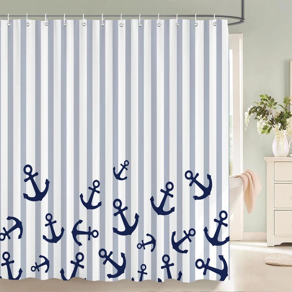 High Quality Nautical Anchor 3D Printed Fabric Shower Curtains Waterproof Bathroom Curtain Bathroom Decor with 12 Hooks