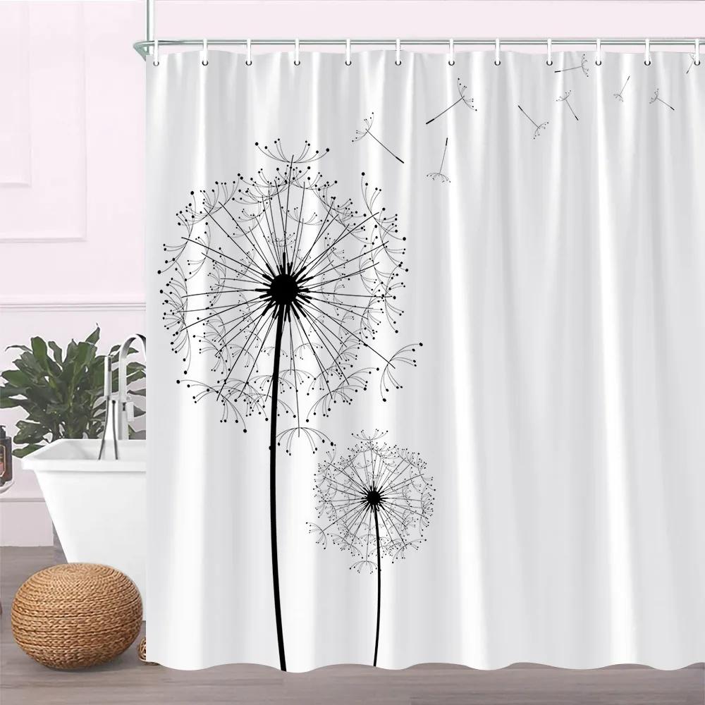 Bez ramy Zasłony prysznicowe z motywem roślin i kwiatów, Dmuchawiec, Akwarela, Motyl, Kwiatowy, Parawan do wanny, Akcesoria ogrodowe do łazienki, Zestaw, Domowy Dec