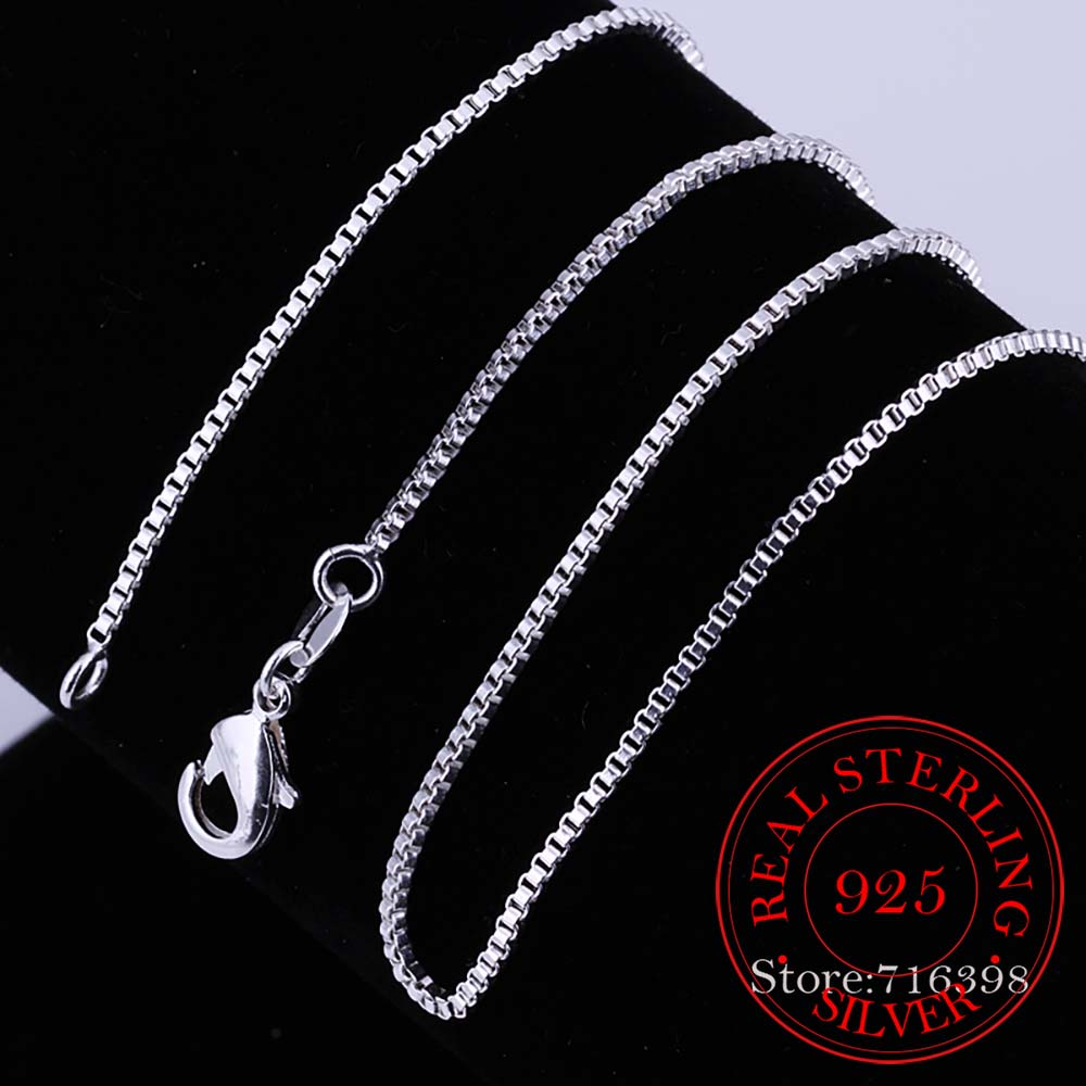 1/1.5/2MM 40cm-60CM Thin Real 925 Sterling Silver Slim Box Chain Necklace Women Girls Children Jewelry kolye collares collier