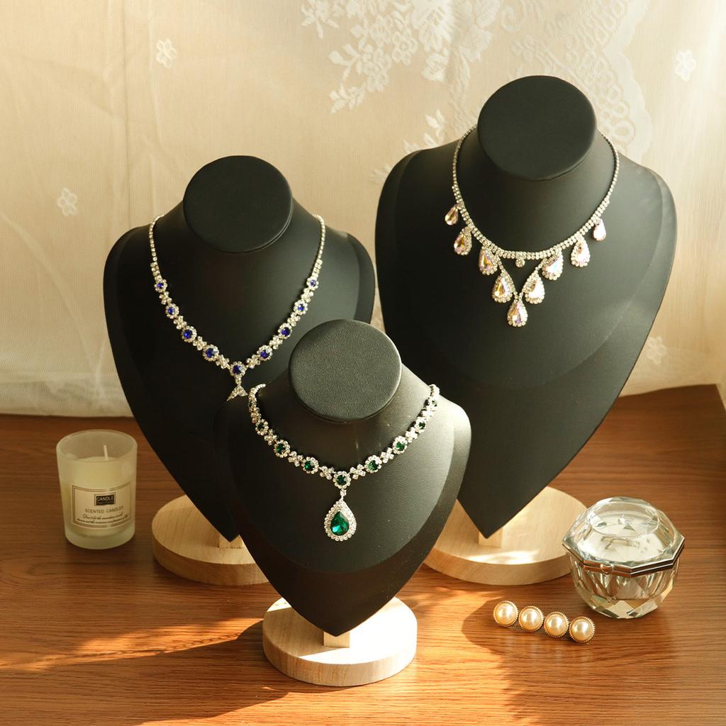 1pc Wooden Mannequin Bust Necklace Display Stand Portrait Model Neck Pendant Jewellery Storage Rack Holder Window Showcase Props