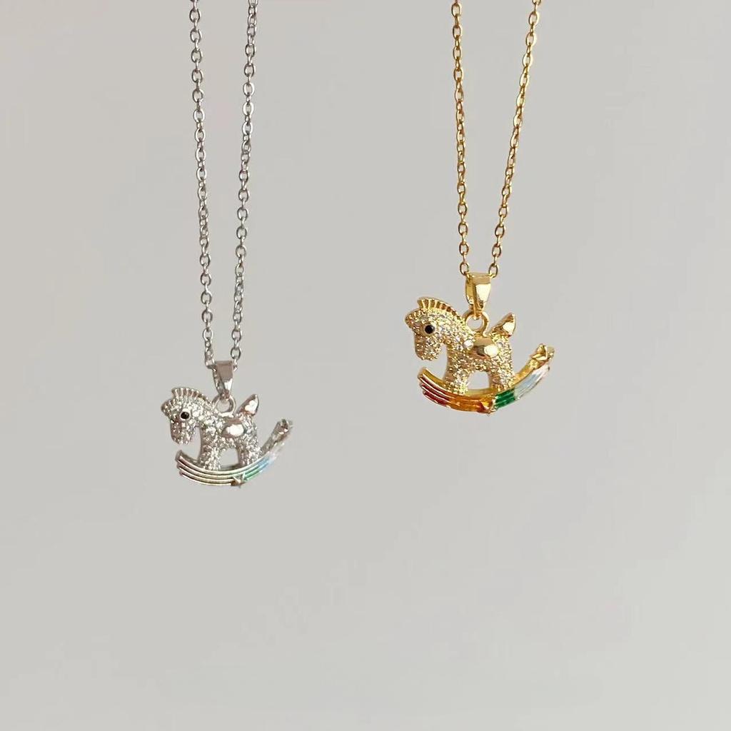 New Korean Style Titanium Steel Necklace Micro-Set Zirconia Small Horse Pendant Simple Elegant Fashion Trend Gold Plated Copper